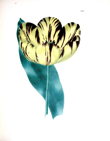 Smith’s skill in small-scale work, evidenced by the exquisite detail of these superb watercolors. Flamboyant tulips appear to rise off the page, their petals unfolding and spilling into the viewer’s space. Marigolds, carnations, auriculas, and dahlias are all endowed with a distinct visual character, some with delicate veins traced along with their translucent petals, others fully opaque and vivid.