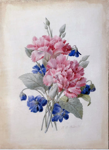 Pierre-Joseph Redouté (Belgian, 1759-1840), Bouquet of Pink and Blue Carnations
